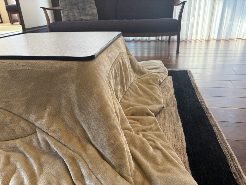 我が家では冬はこたつをギャッベの上に出しています。