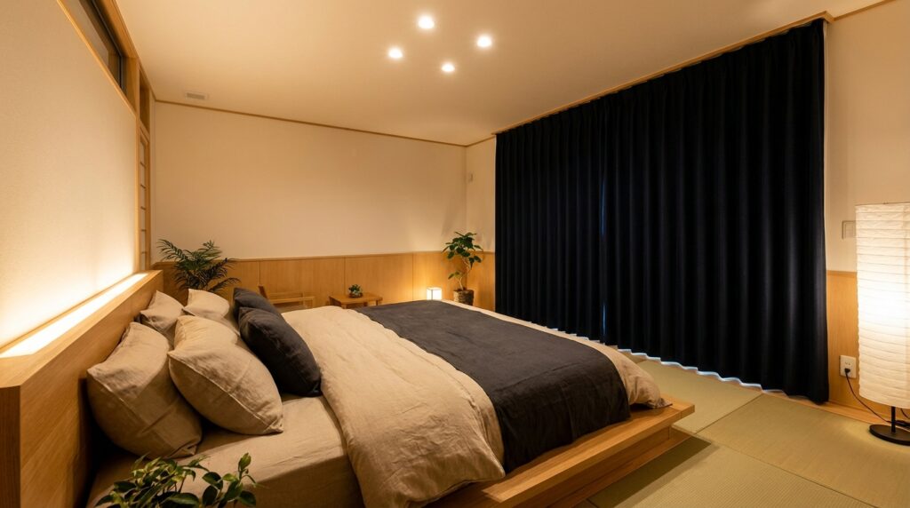 寝室では、質の良い睡眠を確保するために遮光性が重要です。