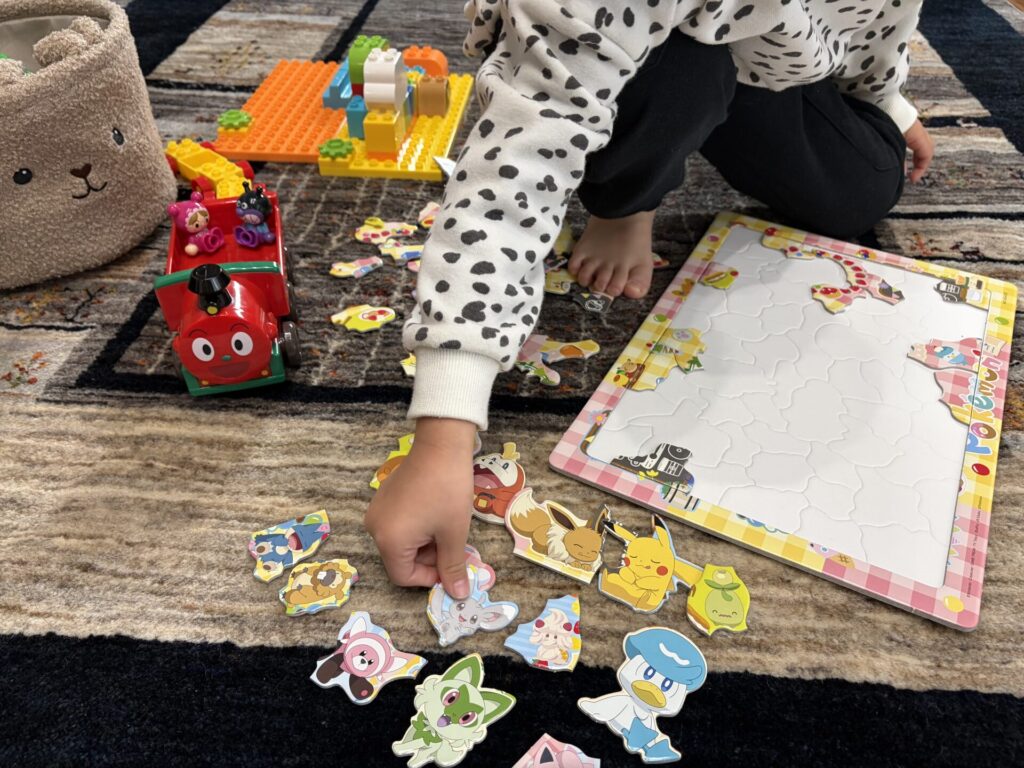 なぜか、ギャッベの上でしか遊ばないので、だんだんプレイマットは出さなくなってしまいましたね。