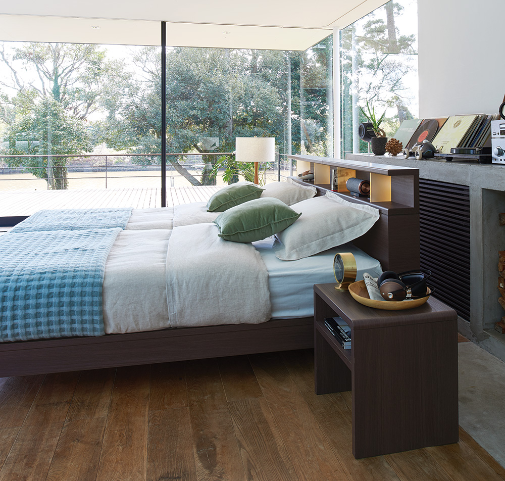 棚付きヘッドボードは、限られた寝室スペースを有効活用したい方に最適です。