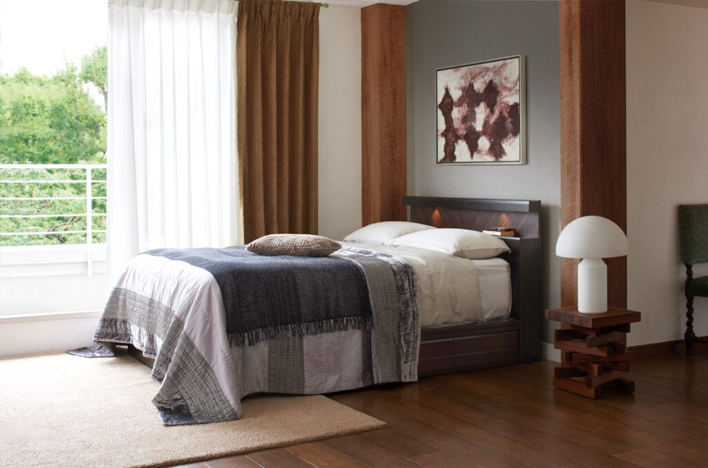 木製ヘッドボードは自然素材ならではの温もりがあり、長く使うほどに味わいが増します。