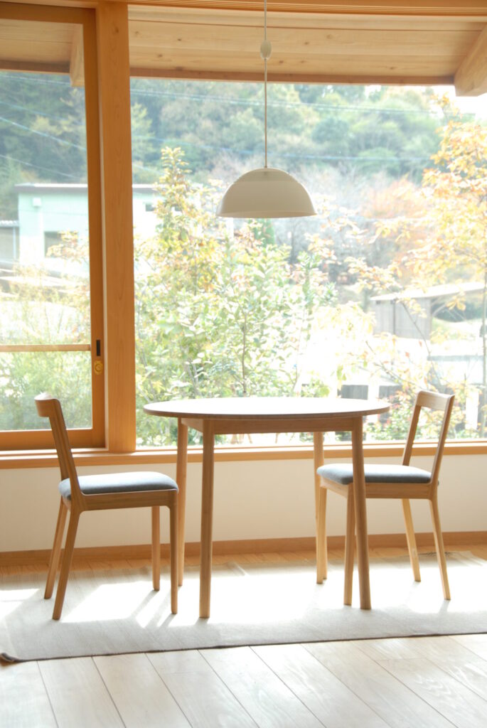 丸いテーブルは座る人全員が平等な位置関係で囲めるため、会話が弾みやすく、家族の団らんが豊かになります。