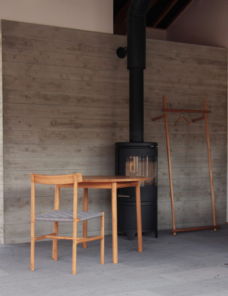 丸いフォルムはテーブルとの一体感を生み出し、空間全体に統一感とやわらかな雰囲気をもたらします。
