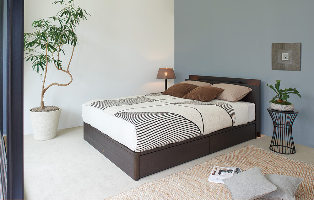 収納付きのベッドやオットマンを選べば、デッドスペースを有効活用できます。