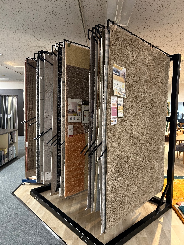 人気デザインの多数商品を、展示ディスプレイ