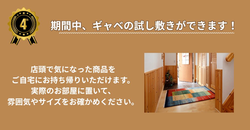 ギャッベが多数展示される、期間限定の特別イベントです。